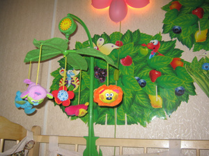 В подарок погремушка на резинке для коляски.