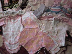 Срочно продам почти 4 кг вещей на девочку от 0 до 6 мес. Состав: теплые носки 2 шт., теплые пинетки 2 шт., носочки 15 пар, шапочка вязаная тонкая 1 шт., шапочка трикотажная тонкая 1 шт., ползунки 9 шт., комбинезоны 5 шт., теплые костюмы (кофточка и штанишки) 3 шт., трикотажный костюм 1 шт., кофточки 10шт., трусики 1 шт., колготки 1 шт., боди с рукавами 4 шт., боди без рукавов 1 шт., распашонки тонкие 5 шт., штанишки разные 8 шт., пинетки и варежки для новорожденных по паре, памперсы для купания на 4-9кг 3 шт.