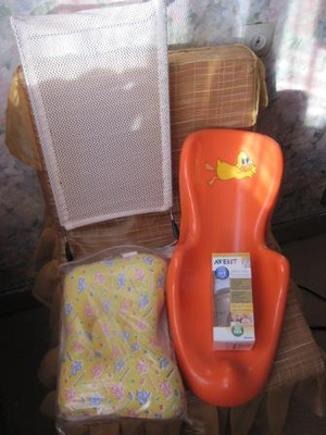 Добавлено: подушка для новорожденных, две подставки для купания - пластмассовая и тканевая, бутылочка AVENT (в упаковке, шла вместе с молокоотсосом).