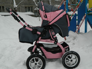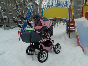 Просторная, уютная и красивая коляска для маленькой принцески. Плавный и тихий ход, отличная амортизация. Огромные пневмо колеса, отличный материалвсе отстегиваеться при желании можно постирать.