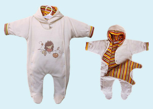 Утепленный универсальный комбинезончик с капюшоном. Полностью расстёгивается, что облегчает процесс одевания ребёнка. Декорирован принтом. Подойдет на холодное лето или теплую весну, или как поддева под зимний комбинезон.