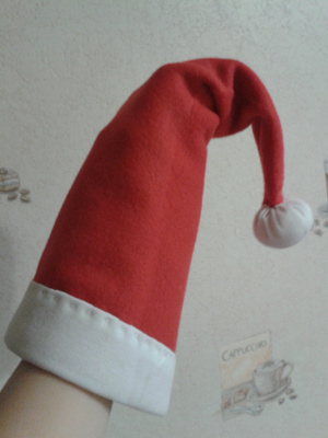 Пока сын спал, шила ему колпак на руках (машинку лень было доставать), в итоге малой оказался. Завтра буду новый шить, эх