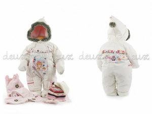 Нам такой дарили, леопардовая курточка, черный полукомбез, размер 12 мес., лежит, так и не носим и зимой носить не будем. Мне кажется они не нашу зиму. Штанцы еще может быть и можно надеть максимум в минус 15, но куртку точно другую нужно.