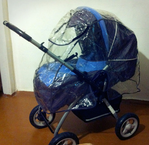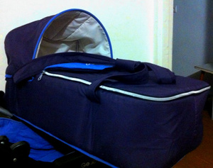 В комплекте матрасик, москитка, дождевик (его ни разу не использовали), тёплый полог на ножки.