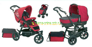 *большие надувные колеса на подшипниках - настоящий вездеход! Коляска шагает по ступеням - я без посторонней помощи спускала и поднимала коляску вместе с упитанным ребенком с 3 этажа без лифта