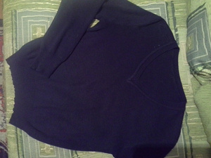 Пуловер темно - синий, модель уни и на мальчика и на девочку подойдет, шерсть/акрил, на рост 150-158, цена 200 руб.