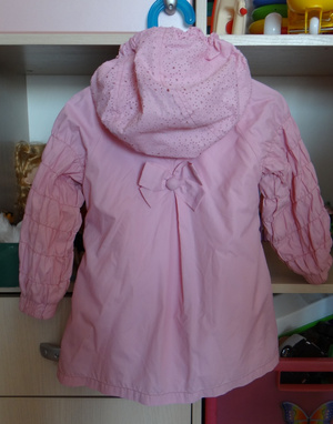 Курточка, розовый хлопок, похожий на деним. Длина рукава 46 см, высота курточки от плеча 37 см. Кнопки. 220 руб