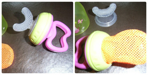 Вместо силиконовой зубочески можно вставить нейлоновую сеточку (их отдельно продают) и тогда малыш сможет учится жевать кусочки пищи. Жуя фрукты и овощи через специальное ситечко, малыш не подавится.