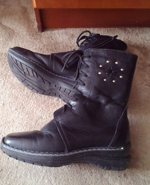 Три пары сапог - кожаные на шнуровке и молнии; кожаные на молнии (надо поменять стельки) и войлочные на молнии. Ступня примерно 20 см, по 400 руб за пару.