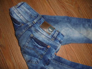 Дырок, потертостей нет, внизу штанины стерлась только надпись.