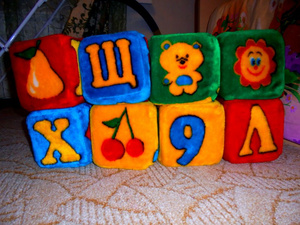 4. Мягкие кубики. 8 шт. Очень яркие. Замечательная развивающая вещь для малыша! Буквы, цифры, картинки.