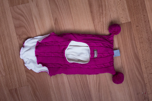 Для удобства использования предусмотрена ручка для переноски, встроенная в капюшон. Внутренняя обивка выполнена из гипоаллергенного материала, а верхняя водонепроницаемая - из высококачественного полиэстера.