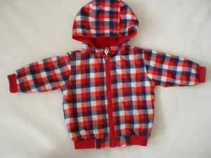 2. Куртка-ветровка двухсторонняя, красная в клетку, флис, плащевка, карманы, размер 62см (Польша) - 400 руб