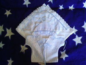 на лето отлично подойдет и просто чепчик, распашенка и тонкая простынка с ажурным уголком, могу за 200р отдать. Ну или договоримся, если заинтересовало.