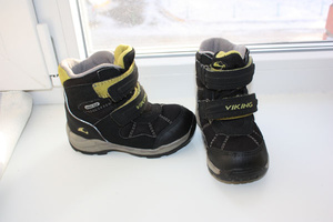 2. мембранные ботинки Viking размер 27 по стельке 17,5 ( здесь можно почитать про них - http://www.royal-kids.ru/catalog/zimnyaya_demisezonnaya/detskie_botinki_viking_bluster_ii_gtx__1/ )...б/у одну зиму, но успели закосячить на носках, в остальном состояние отличное - ремонт в любой мастерской около 300 рублей....цены на б/ушные ботинки от 1500 - поэтому скину на ремонт 500 рублей - отдам за 1000 рублей ...цена на коробке 75 евро