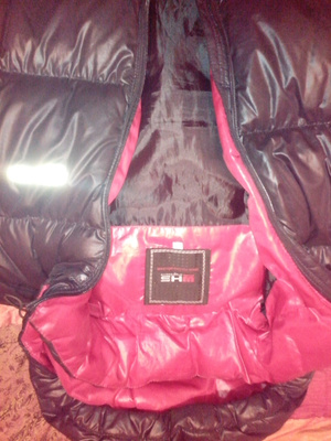 Носили до -25, очень теплый, красивый, дутый, легкий. Цвет черный, подклад красный, по низу есть утягивающая кулиска