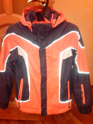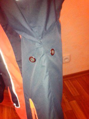 Центральная молния на закрытой ветрозащитной планке, воротник стойка с велюровой отделкой, скользящие молнии, вентиляция, съемный регулируемый капюшон, снегозащитная юбка, трикотажные манжеты внутри рукава, карман для sky pass. Ткань ветрозащитная, влагоустойчивая, морозоустойчивая, по низу регулируемая кулиска. Утеплитель синтепон. Цвет как на фото: темносерый-оранжевый-белый