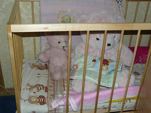 Детская кроватка из березы, с матрасиком из кокоса, можно менять высоту матрасика - для малышей и постарше 700 руб