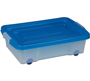 Играем-храним в большом низком икеевском контейнере с крышкой.