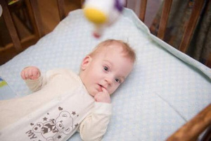Миланочка - профильная для нашего сообщества, а потому ее развитие идет в своем неспешном темпе. До недавнего времени Милана лежала в кроватке, безучастная ко всему, вызывая тревогу и огорчения у воспитателей, много сил отдающих ее развитию. Теперь же, к их великой радости, обозначились положительные тенденции. Девочка ловит взгляд, реагирует на знакомый голос, переворачивается со спинки на животик. Она тянется к подвесным игрушкам и, когда ей удается схватить одну из них, не выпускает из ручек, играет.