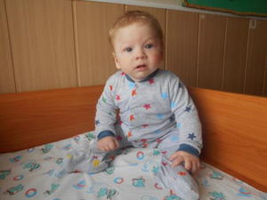 Характер: Ребенок самостоятельно сидит. Иван старается двигаться вперед, уверенно ползает. Мальчик произносит отдельные слова "мама", "баба", "дай", "ням". Поворачивает голову на голос взрослого, внимательно смотрит на лица. У малыша на лице при этом отчетливо видна яркая эмоциональная реакция на тон и настороение взрослых и детей. Часто стал улыбаться взрослым. Внимательно наблюдает за детьми. Ваня стал брать игрушки, держит их крепко в обеих руках, перекладывает, гремит. Ребенок начал оживляться в предвкушении кормления. Он крепко держит ложку в руках, тянет ко рту. Аппетит у мальчика хороший. Засыпает самостоятельно, спит долго и спокойно.