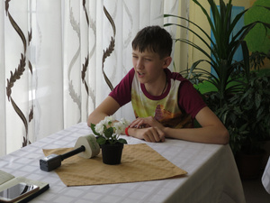 Антон приехал к нам еще весной. Сначала ему было страшно в незнакомом месте и совсем не понятно, зачем он приехал к нам, он кричал и плакал. Он не давал снять с себя ботинки и хотел уехать обратно. Но постепенно Антон понял, что дети и взрослые настроены к нему дружелюбно. Он успокоился и привык. Антон хорошо понимает, что нужно делать: сам заправляет кровать, умывается, чистит зубы, причесывается, одевается, и с удовольствием гуляет на улицу.