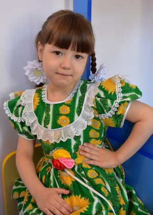 Характер: Девочка общительная, ласковая, милая, обаятельная девочка, ее любят и хвалят воспитатели. Малышка веселая, доброжелательная, хорошо ладит с детьми. Она очень любит подвижные игры, собирать мозаику, играть куклами, нравится слушать сказки, рассказы воспитателя, рассматривать картинки, иллюстрации.