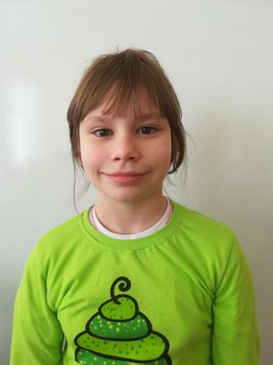 Лола. К. август 2004 г.р. – активная, общительная, творческая, ответственная, старательная, исполнительная и отзывчивая девочка. Лола имеет много друзей, с удовольствием общается с людьми. Посещает ИЗО студию по декоративно – прикладному искусству. Постоянная участница Всероссийских, краевых и районных конкурсов творческих детских работ (имеет грамоты).