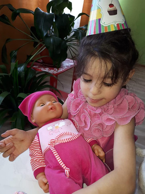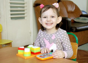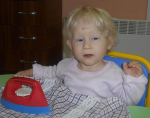Олеся хорошо понимает обращённую к ней речь, в самостоятельной речи активная, при необходимости обращается за помощью к взрослым, используя указательный жест или простые слова. Девочка любит играть в подвижные игры: бегать, качаться на качелях, кататься, играть с мячами. На индивидуальных занятиях Олеся старательно осваивает понятия формы, цвета, величины; строит из кубиков башенки и дорожки, собирает пирамидки. Девочка с интересом играет в развивающие игры на внимание и память. В самостоятельной игре Олеся подражает действиям взрослых: готовит еду, раскладывает её по тарелочкам, кормит куклу, качает её, укладывает спать. У Олеси хороший аппетит, девочка самостоятельно ест, пьёт из чашки. Олеся быстро засыпает и крепко спит.