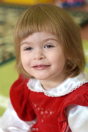 Общительная, доброжелательная, активная девочка. На знакомых и незнакомых взрослых реагирует положительно. Речь сформирована в соответствии с возрастом. Любит книжки, индивидуальные занятия, например, у психолога, участвовать в праздниках и других общих мероприятиях. Со сном и питанием проблем нет.