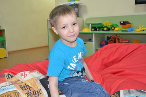 Общительный, доброжелательный, активный мальчик. На знакомых и незнакомых взрослых реагирует положительно. Речь сформирована в соответствии с возрастом. Любит музыкальные игрушки, индивидуальные занятия, например, у психолога, участвовать в праздниках и других общих мероприятиях. Со сном и питанием проблем нет.