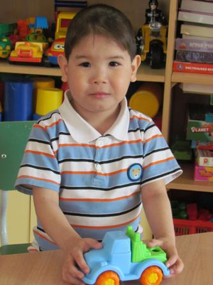 Характер: Мальчик активный, легко идет на контакт со взрослыми. Любит играть машинками, собирать мозайку.