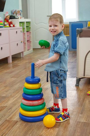 Несмотря на свою не слишком понятную речь, Артем не против поговорить. Он артистичный, любит танцевать и петь. Тема – активный парень и совсем не безнадежный. Форму, цвет, количество – все это он знает, что было виртуозно продемонстрировано перед фотокамерой. Артем правильно собрал пирамидку, называя все цвета и размеры пластмассовых колец, которые он нанизал на центральный штырек с последовательностью, не вызвавшей у парня особенных затруднений. Воспитатели рассказывают, что занимается Тема с увлечением, он пытается рисовать и складывать конструктор. Охотно Артем откликнулся и на все предложения фотографа Валерий Касаткин. Надо принести стульчик – несет. Нужно съехать с горки – с удовольствием! По характеру Тема любит быть первым, он активный и подвижный мальчик. Нянечки говорят, что из еды Артем не любит только запеканку. Со всеми другими блюдами у ребенка проблем не возникает.