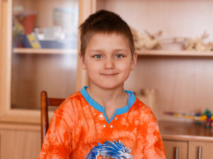 Богдан родился в ноябре 2012 года. У Богдана много увлечений: мальчик с желанием рисует, лепит из пластилина, слушает русские народные сказки. Богдаша всегда приходит на помощь младшим детям: помогает убрать игрушки или завязать шнурки.