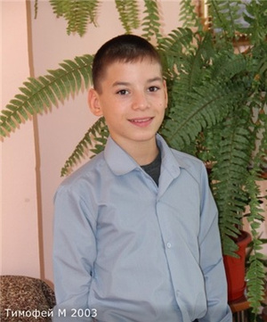 Тимофей М., родился в ноябре 2003 г. Красноярский край. 15 лет