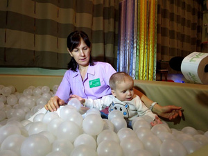 «Когда ребенок к нам поступил, он практически самостоятельно не ел. Он не держал ложку. Он пищу привык кушать только перетертую, просто ее проглатывать. Сейчас очень большой прогресс - ребенок самостоятельно держит ложку, он постепенно привыкает к твердой пище. И, более того, он у нас уже научился жевать, проглатывать», - рассказывает воспитатель Наталья Юрчук.