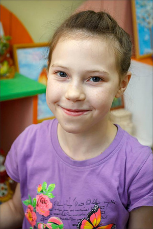 Поэтому в семью устраивается только Дашенька. Эта четырнадцатилетняя девочка разительно отличается не только от детей, оставшихся без родителей, но даже от многих подростков с более благополучной судьбой. В ней нет колючести и противоречий, свойственных этому возрасту. Дарья любит маленьких детей. Она доброжелательная, общительная и воспитанная. Услышав в свой адрес комплимент, тут же сказала «спасибо». А хвалить девочку можно не только по поводу ее приятной внешности. Даша хорошо учится, любит петь и танцевать, участвует в театрализованных представлениях. Радость нашему маэстро Валерий Касаткин: творческая девочка фотографировалась очень изящно и с удовольствием, ей не мешали руки, как это часто случается у только входящих в девичью пору юных созданий.