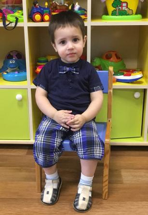 Сёме почти три года, у него полный статус и четвертая группа здоровья – проблема с ножками (детками с таким диагнозом Алёна Синкевич занимается). Врачи дают хороший прогноз, говорят, что, скорее всего, будет ходить. Голова у парня светлая, развит по возрасту, говорит уже понемногу, характер замечательный, спокойный и жизнерадостный. Такой милый пухлый пупс, которого хочется все время тискать. В описании в ФБД о нем стоит одно слово – возбудимый. Я наблюдала за ним две недели, ни разу не видела, чтобы он скандалил. Сёма любит поесть, и оттого у него есть лишний вес, но с тех пор, как он научился ползать, а волонтер стала ходить с ним в бассейн, он уже начал худеть.