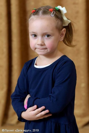 Спокойная, ласковая, доброжелательная, трудолюбивая девочка. Настя старается делать все самостоятельно, целеустремленная. Любит спокойные настольные игры в группе, раскрашивать картинки, делать поделки из пластилина. С удовольствием играет в куклы, смотрит мультфильмы. Возможные формы устройства: опека.