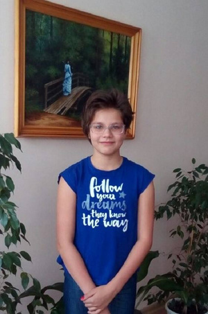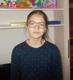 Общительная, творческая, отзывчивая, целеустремленная, уверенная в себе девочка. Принимает активное участие в мероприятиях. Посещает кружок «Театр юных сорванцов», являлась неоднократным лауреатом городских, областных, всероссийских конкурсов художественного чтения и театрального искусства. Любит помогать взрослым, начатое дело доводит до конца. Обучается в 7 классе. К учебе относится с интересом и чувством ответственности. Имеет отличную успеваемость по всем предметам. Любимые предметы русский язык и литература.