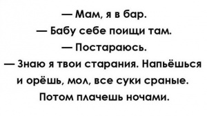 Ехал в автобусе с работы, все сидячие места заняты, одно занято подвыпившим мужчиной. На одной из остановок заходит женщина, лет сорока. Подошла к этому мужику подвыпившему и у них состоялся такой диалог (слово в слово не передам, но смысл и последняя фраза точны).