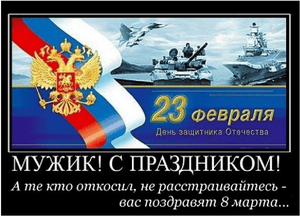 С праздником, мужчины,а отдельно защитники отечества!!! Это было актуально во все времена,а сейчас тем более))