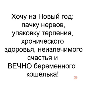 Хочу в Новый год страшный аппетит чтобы не кончался, чтобы похмелье не начиналось, чтобы сидеть и есть-есть-есть и не рыгать.