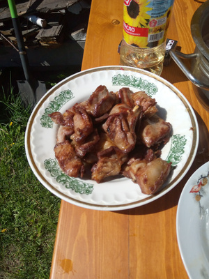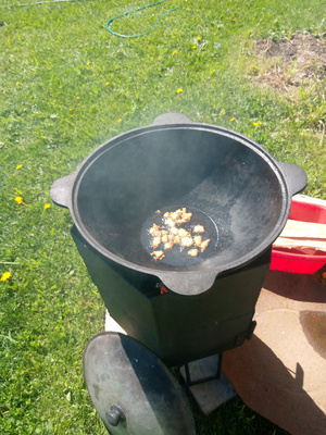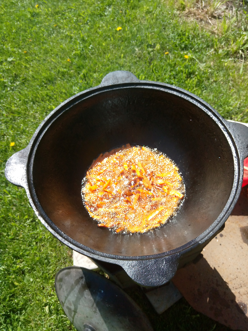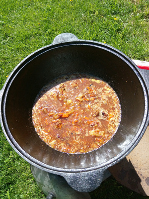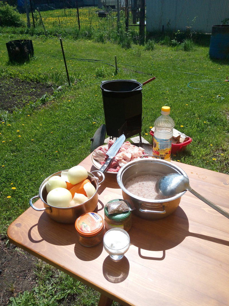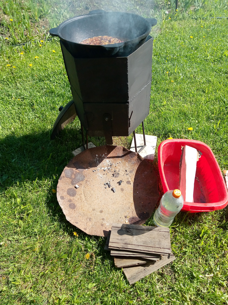И так я тут на днях завершил доделку печки. Зачистил и покрасил И вчера был испытания ее в режиме приготовления плова. Отлично себя зарекомендовала. Суеты с дровами существенно меньше. Я, когда варился зирвак (это два часа) я попил чаю и скосил траву, по минимуму отвлекаясь на добавку дров. Иногда нужно огонь регулировать как в мангале. Водой из бутылки с дырочками в пробке. И процесс и результат очень мне даже понравился. И после была баня, как обычно.