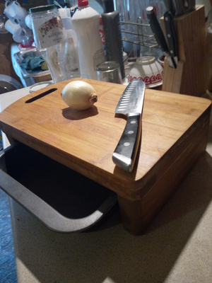 Ну и в тему готовки. Купил баранины 3 с лишним кг и разделывал на доске топориком кухонным. В результате доска от рубки на ней и развалилась. Я ее отремонтировал. И модернизировал. Смотрите что получилось.