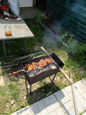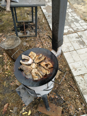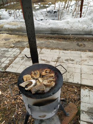 Ничего не спутал. Не важно, весна или осень - нечего валяться опилкам в месте приема пищи, равно как старой еде и окуркам у печи мангала. Завидовать абсолютно нечему, рядом с моим мангалом всегда чистота и порядок.