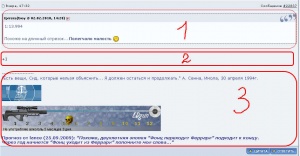 Это такая здоровая хрень в подписи, чтобы превратить форум в головоломку. Потом между ними надо выискивать сообщения. Там идет отсчет "маиму рипенку 2 года и 3 месяца. осталось. потом он из тюрьмы выйдет" или "бросил бухать. прошло уже 28 минут".