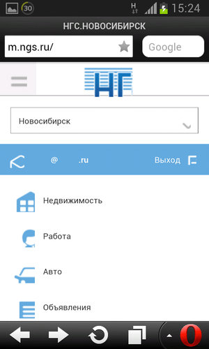 Если ткнуть в две мутные линии слева вверху, вылезет набор всякой ерунды (недвижимость, работа, объявы), при этом адрес остается тот же самый (m.ngs.ru)