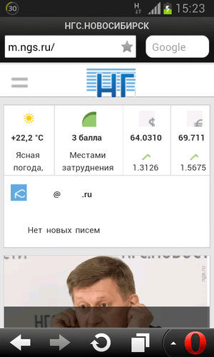 При попытке зайти на ngs.ru перебрасывает на m.ngs.ru и получаем то, что на первом скрине - страница вниз не пролистывается, единственная доступная новость - та, на которую можно попасть, тыкнув в фотку внизу.