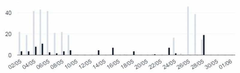 Вот так выглядит (сереньким), сколько удалось за последний месяц загрузить статей.